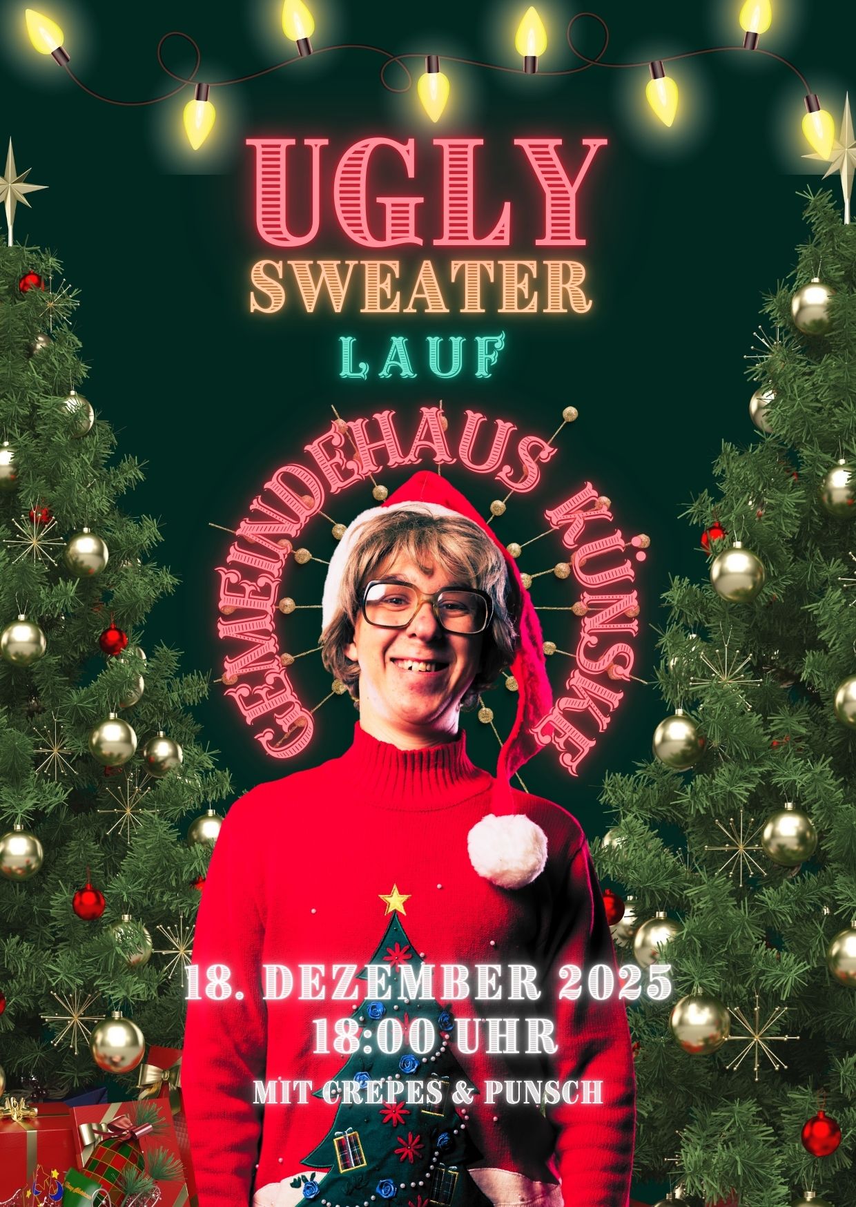Künsebeck lädt in der Vorweihnachtszeit zu einer besonderen sportlich-festlichen Aktion ein: Am XX. Dezember um 17:30 Uhr startet der  „Ugly Sweater Lauf“ in Halle-Künsebeck. Die Idee stammt ursprünglich aus Nordamerika, wo es seit vielen Jahren Tradition ist, sich in der Adventszeit zu sportlichen oder geselligen Treffen in möglichst schrillen, kitschigen und „hässlichen“ Weihnachts-Pullovern zu versammeln. Inzwischen erfreuen sich Ugly Sweater Partys und Läufe auch in Europa immer größerer Beliebtheit.